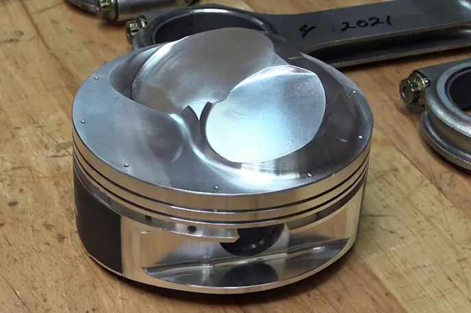 Attached to the rods is a set of off the shelf JE Pistons high-compression slugs. With a finished bore of 4.600 inches, there are plenty of ready-to-go options. These forged pieces feature a well-refined dome design that not only brings compression up to around 15:1, but also doesn’t interfere with flame propagation.