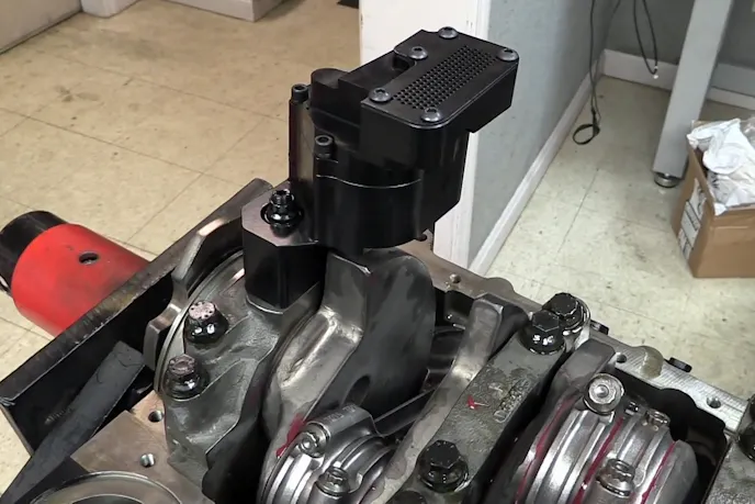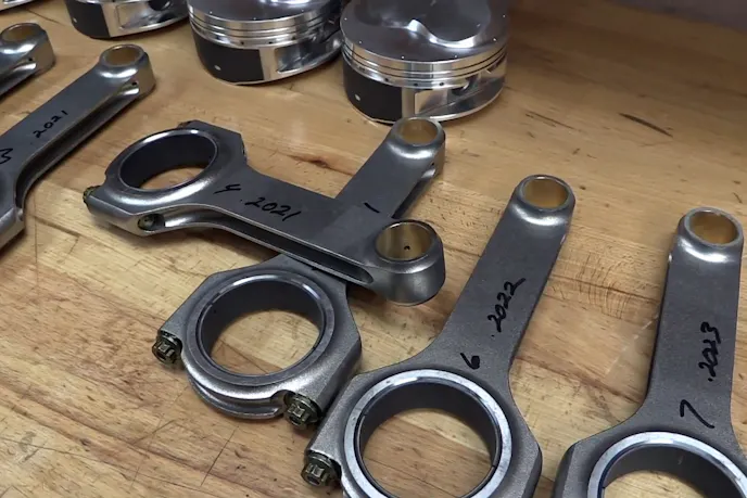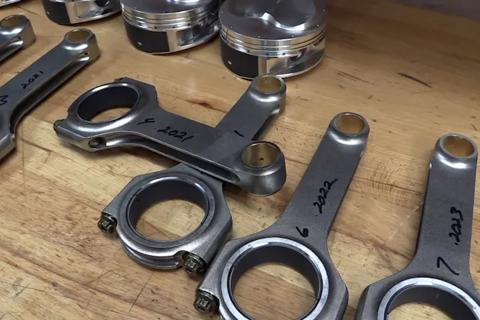 Hanging off the crank are a set of PBM forged 4340 steel H-beam rods, also with Clevite H-series bearings. While an off-the-shelf 6.535-inch rod length is used, they do have a unique feature in that they use .200-inch shorter rod bolts than standard. The 1.600-inch ARP2000 bolt have the same strength, but provide additional clearance and shave a small amount of weight.