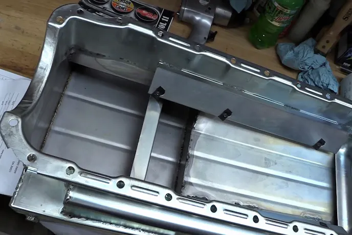 One caveat to the Moroso billet oil pump setup is that it requires an 8-inch-deep sump. Fortunately, Canton offers a fabricated deep-sump drag race pan for the big-block Chevy, with an 8-inch sump depth. In addition to the drag race baffling, a louvered windage tray is used to control excess oil motion at the full seven-quart capacity.