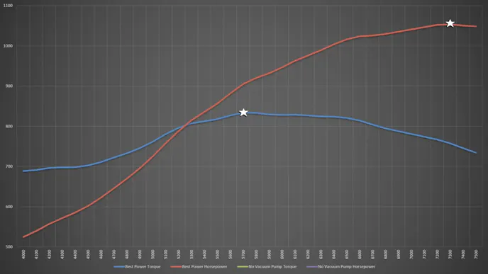The team complete the tuning session with the spacer attached and ended up with final power numbers better than the customer was hoping for. 1,053 horsepower at 7,300 rpm and 834 lb-ft of torque at 5,700 rpm. 1.81 horsepower-per-cubic-inch is nothing to sneeze at, especially when you consider the whole engine came in under $20,000 and used all off-the-shelf parts.