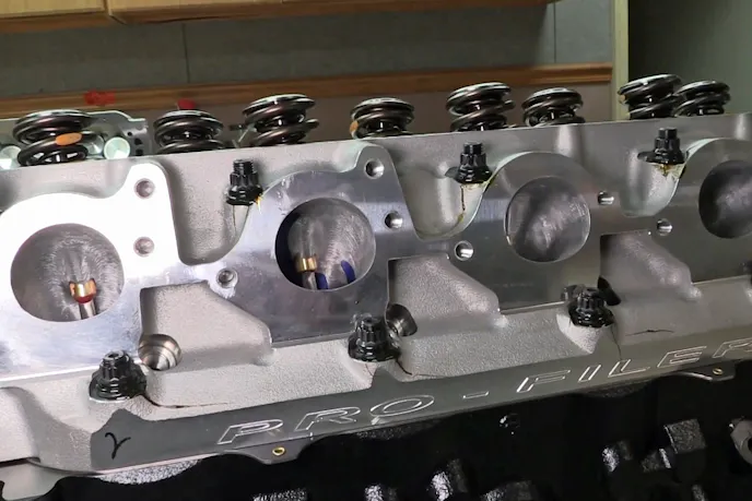Controlling those valves are triple-nested Erson valve springs with a 2.100-inch installed height, secured by Erson titanium retainers. The springs offer 350 pounds of seat pressure and an open pressure of somewhere around 1000 pounds. That is required to control the valvetrain at almost 8,000 rpm.