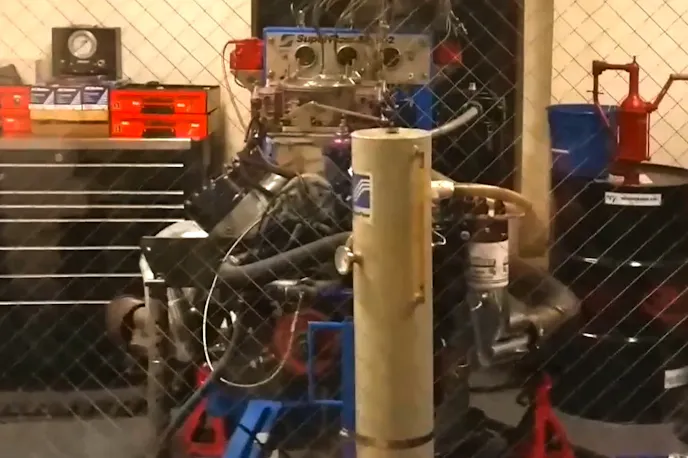 The SBX heads evolved from the old NHRA Pro Stock Truck wars. On top is a HRE sheet-metal intake supporting a pair of Dominators from Book Racing. Compression ratio is somewhere “around 15 or 16:1.”