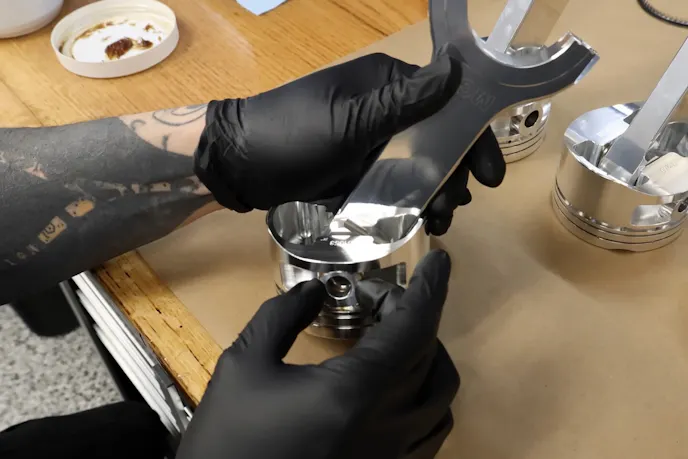 This is not a garage build, they don’t soak the pistons in ATF before installing them into the engine. Using precision oil placement, each piston is hand-lubed and dropped into the block by hand, no hammer needed. The same precision oiling is used for the main cap bolts. When you buy a 4Piston Racing engine, you are buying meticulous engineering in the guise of an engine. This is hypercar stuff, you don’t see this level of detail in production-line anything.