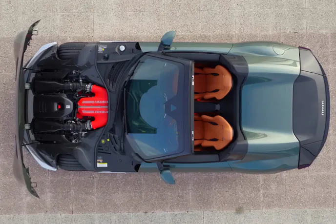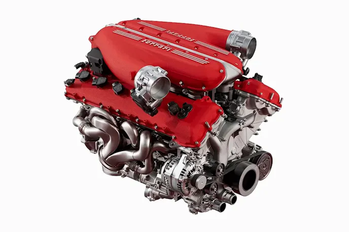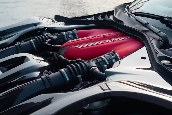 Based on the F140B in the Enzo, the new V12 revs higher than its predecessor thanks in large part to the reduced weight of the rotating assembly. Like the entirety of Hollywood, Ferrari put the V12 on Ozempic, using titanium connecting rods and a new aluminum alloy for the pistons to shed every possible gram they could, saving 40 percent of rotating mass. The valvetrain uses a unique sliding-finger follower, taken from Ferrari’s F1 engines, which saves even more mass. The sliding fingers use DLC (Diamond-Like Carbon)-coated steel, to reduce friction and wear as the sliding motion has more inherent friction than a roller. All of these innovations were aimed at optimizing the torque curve to deliver maximum FITA (Foot In The Ass) kick from idle to redline.