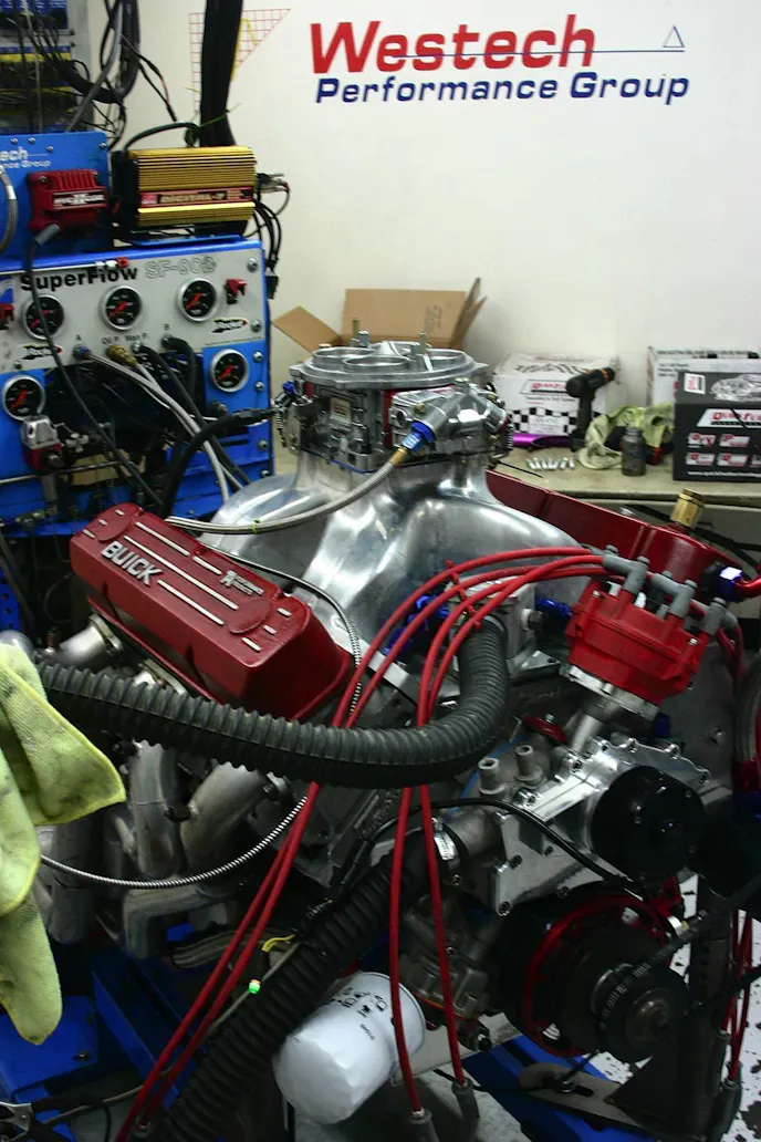 Kent’s new bullet clicked off a best of 954.5 horsepower at 7,200 rpm on the Westech dyno. Peak torque came in at 771 lb-ft. The engine will now go back into the Apollo–which was Buick’s version of the Chevy Nova–for another year of racing, including a trip to the Buick Nationals. He ran a best of 9.58 @ 143mph in a car that weighed 3,700 pounds. Now, with the new engine and a 300-pound weight reduction in the Apollo, Kent has a goal of 8.90 and 150mph.