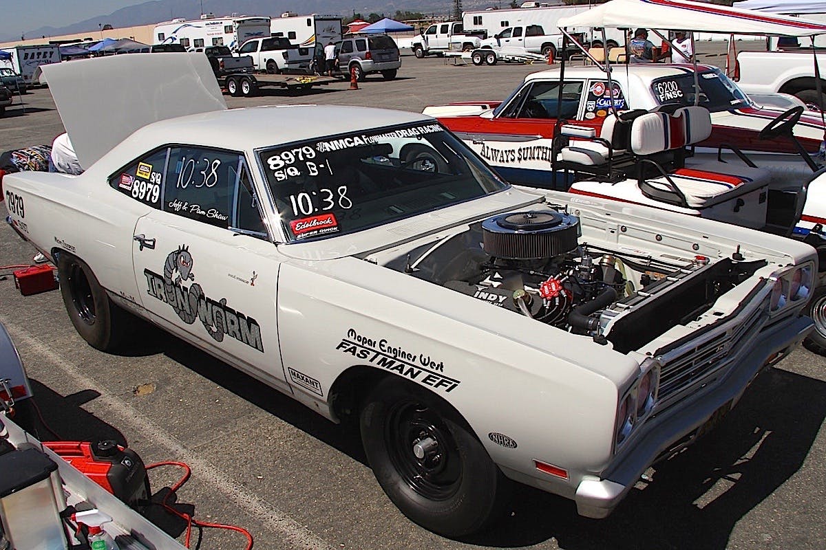 The titanium gray paint job is stunning, and even his wife Pam chipped in with colorful Road Runner logo embroidery for the interior. While looking over the car, the conversation usually drifts to the Iron Worm graphics on the door.