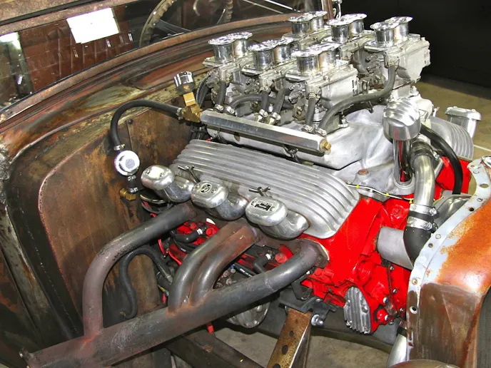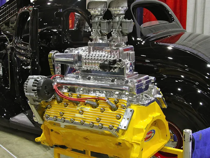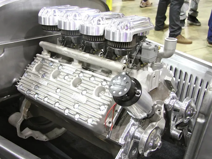 The 65th annual Grand National Roadster Show held at the L.A. County Fairgrounds in Pomona, California, is one of the largest and most prestigious car shows in the country, so one can expect a wide variety of engines to go along with the quality of vehicles on display. EngineLabs walked a good portion of the show, looking for the most interesting and eye-catching powerplants we could find under the hoods. Car builders were quite innovative in their presentation, ranging from hardcore rust-chic all the way up to precision billet. We found all makes and models, 2-cylinder up to 12-cylinder, blown and injected, N/A and turbo, and even a couple model-car engines that if you don’t have a really sharp eye you could easily mistake them for the real deal. Some were finished, dyno tested and ready to run. Others were dressed for show, and even a few were in various stages of build. All were cool in some form or manner. The following gallery of engine shots can offer numerous detailing tips for street rods and musclecars as well as ideas for routing intake ducts, setting up accessory drives and choosing induction options. You can click on any image to see a full-size view. Enjoy the show!