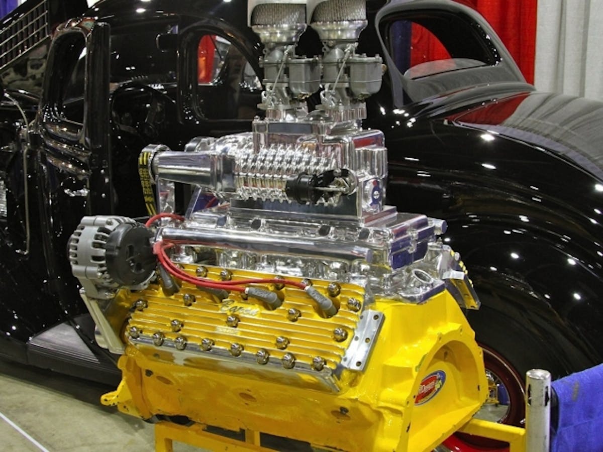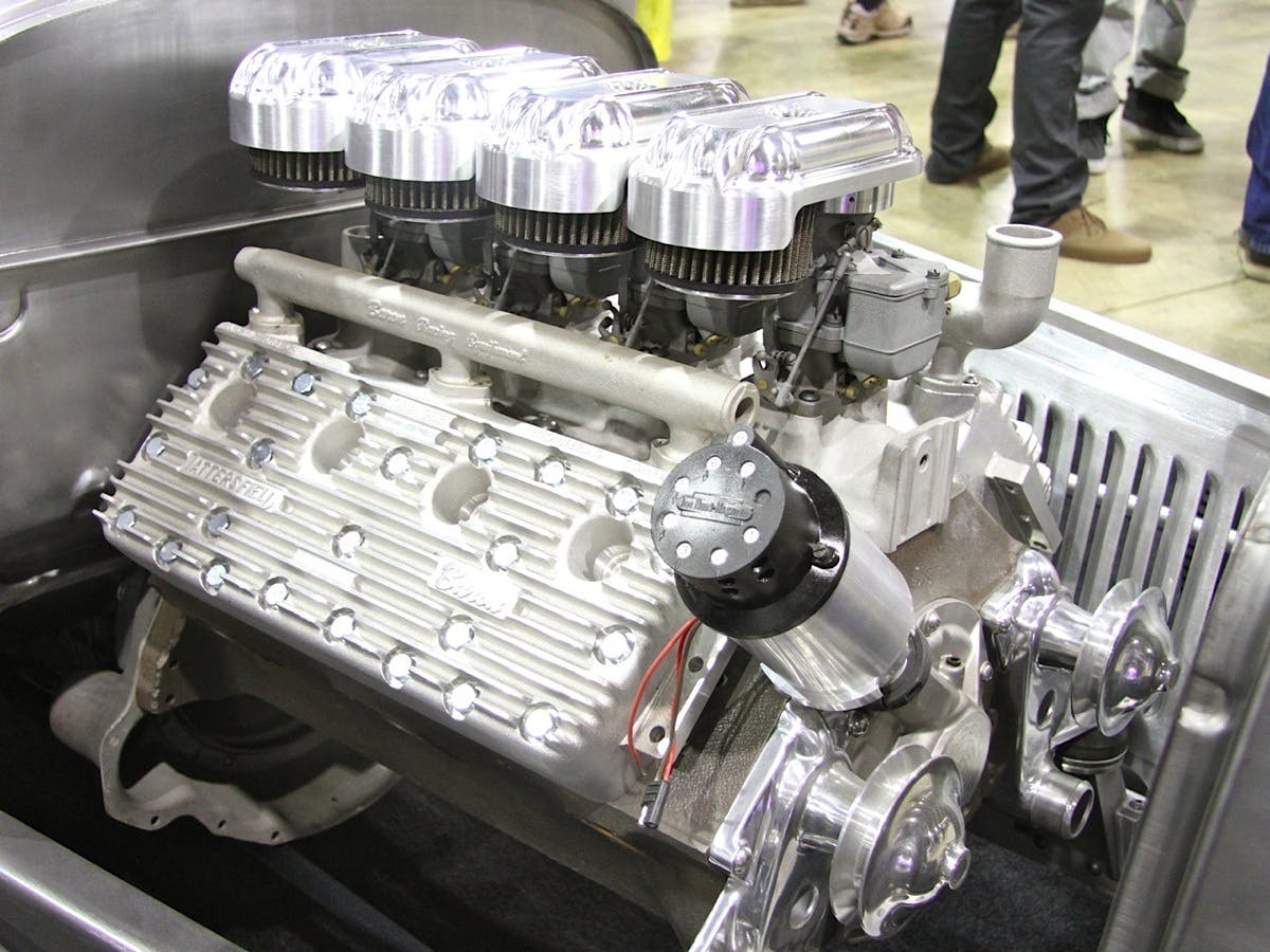 The 65th annual Grand National Roadster Show held at the L.A. County Fairgrounds in Pomona, California, is one of the largest and most prestigious car shows in the country, so one can expect a wide variety of engines to go along with the quality of vehicles on display. EngineLabs walked a good portion of the show, looking for the most interesting and eye-catching powerplants we could find under the hoods. Car builders were quite innovative in their presentation, ranging from hardcore rust-chic all the way up to precision billet. We found all makes and models, 2-cylinder up to 12-cylinder, blown and injected, N/A and turbo, and even a couple model-car engines that if you don’t have a really sharp eye you could easily mistake them for the real deal. Some were finished, dyno tested and ready to run. Others were dressed for show, and even a few were in various stages of build. All were cool in some form or manner. The following gallery of engine shots can offer numerous detailing tips for street rods and musclecars as well as ideas for routing intake ducts, setting up accessory drives and choosing induction options. You can click on any image to see a full-size view. Enjoy the show!