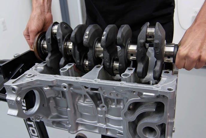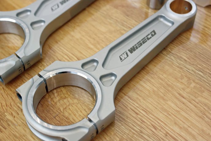 Surprisingly, the OEM forged crankshaft with the factory 99mm (3.898-inch) stroke is up to the task, and is used in the build, after having the oil holes chamfered and a high-pressure cleaning of the passages. Connected to the crank are a set of Wiseco BoostLine steel connecting rods, which are built to not only take the boost – as the name implies – but to do so with the least amount of added weight to the rod as possible.