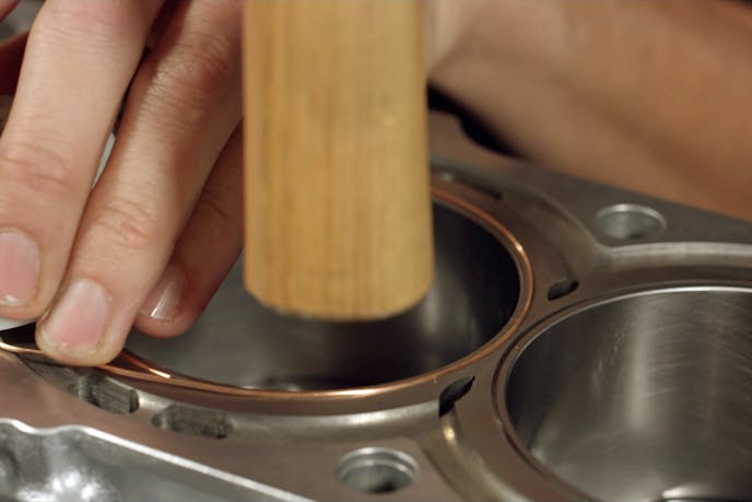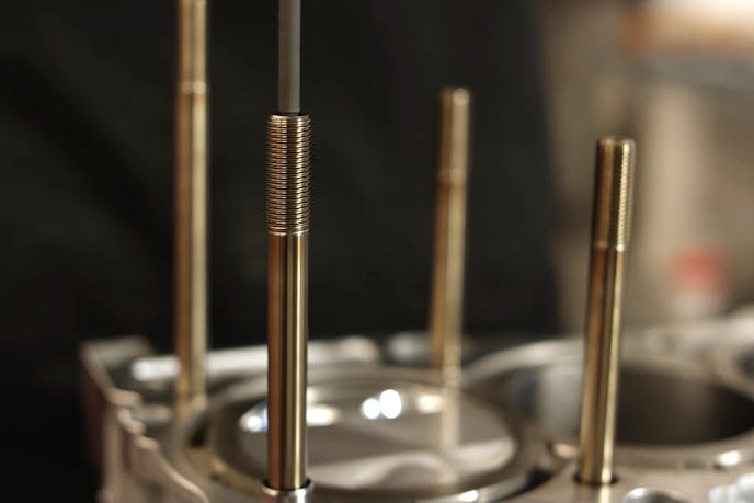The team machines a groove in the deck surface for a copper-wire O-ring along with installing a set of ARP L-19 head studs, in order to handle the cylinder pressure, in addition to running a Cometic head gasket built specifically to 4P’s specifications to help seal the head to the block under intense cylinder pressures encountered by running 30-plus pounds of boost.