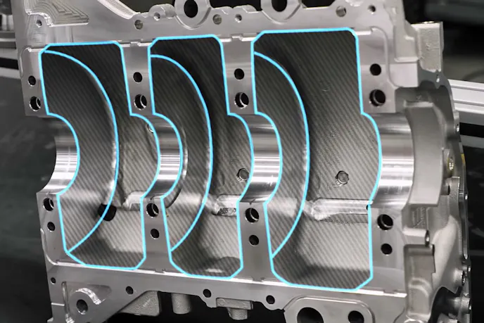 The slightly oversquare engine has a 3.600-inch bore with a 3.500-inch stroke allowing it to carry its 500-horsepower peak from 6,500 to 7,500 rpm. A 10.0:1 compression ratio allows for efficient combustion across the map and works well with the dual fuel injection layout (both port- and direct-injection).