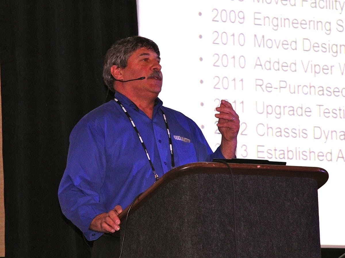 Carducci presented an enjoyable discussion on the development of the Viper engine and how it’s adapted to a variety of racing applications. While somewhat short on specifics — even information on dyno charts were redacted — the overall emphasis was that a good production engine can be a great racing engine.