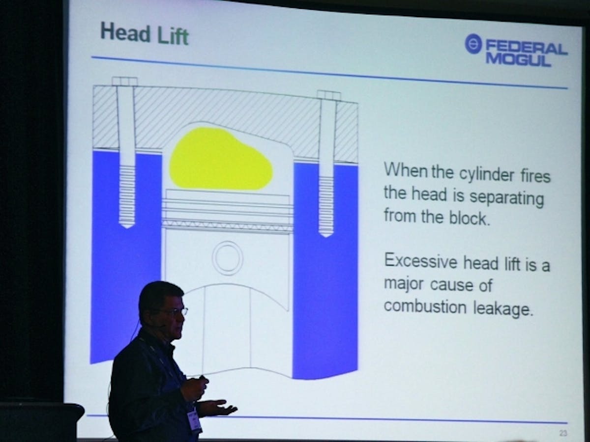 A key advantage with MLS gaskets is the emboss bead around the bore functions as a spring. In fact, Fel-Pro indicates that the height, width and shape of the emboss beads actually the “spring rate.” When the cylinder fires, the head tries to separate from the block due to the cylinder pressure. But excessive lift is a major cause of combustion leakage. Acting in a spring-line manner, the MLS gasket continues to seal because it continues to fill the gap during the lift. Part of the demonstration highlighted the extensive equipment Fel-Pro has developed to measure head lift and cylinder pressure during development of the MLS gasket. Fel-Pro’s data demonstrated how much cylinder pressure increased during pre-ignition and detonation conditions, especially when peak pressure happens closer to TDC than a few degrees past TDC, as in normal operating conditions. Ensuring proper ignition timing is also critical in reducing the chances of detonation.