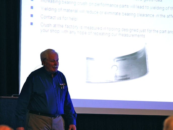 The guts of an engine dominated the afternoon session on day 2 of the 2013 Advanced Engineering Technology Conference held in Indianapolis before the PRI Show opens. Bill McKnight of Mahle Clevite discussed “The Science of Bearings and How They Can Be Optimized to Maximum Performance” while Stephen Golya and Dane Kalinowski of JE Pistons talked about “The Design and Analysis of High Performance Rotating Assemblies.”