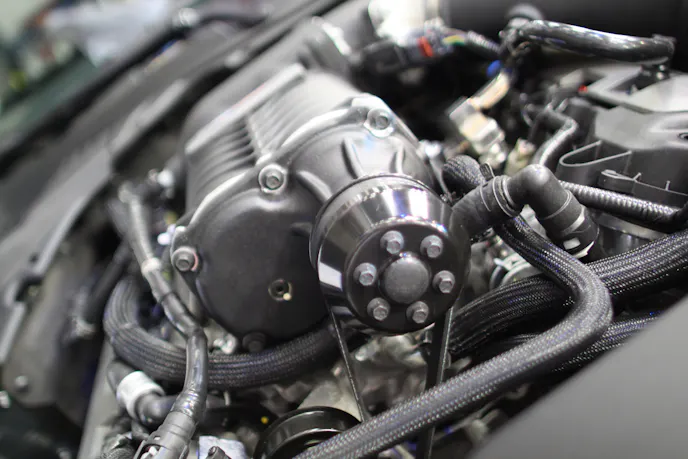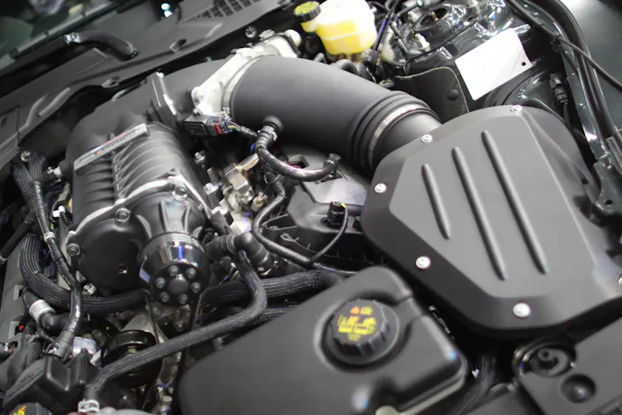 The rest of the supercharger system is all-new for the 2015 car; despite the use of the same basic Coyote engine, there are differences in the powerplant to provide increased performance – larger intake valves, larger ports in the cylinder heads, and new exhaust valves among others. New pistons and connecting rods are also making their way down the assembly line.