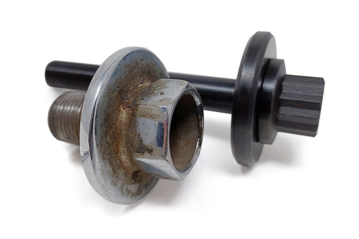 When car manufacturers developed fastener requirements for engines, the harmonic damper bolt was intended to merely secure the balancer, so a flat hex-headed design was typically employed. But in the world of high performance, the balancer bolt gets quite a workout on account of needing to turn the engine over manually to set the timing, adjust valve lash, etc. This often results in the bolt head becoming “rounded off” from heavy use — sometimes to the extreme extent where wrenching is virtually impossible.