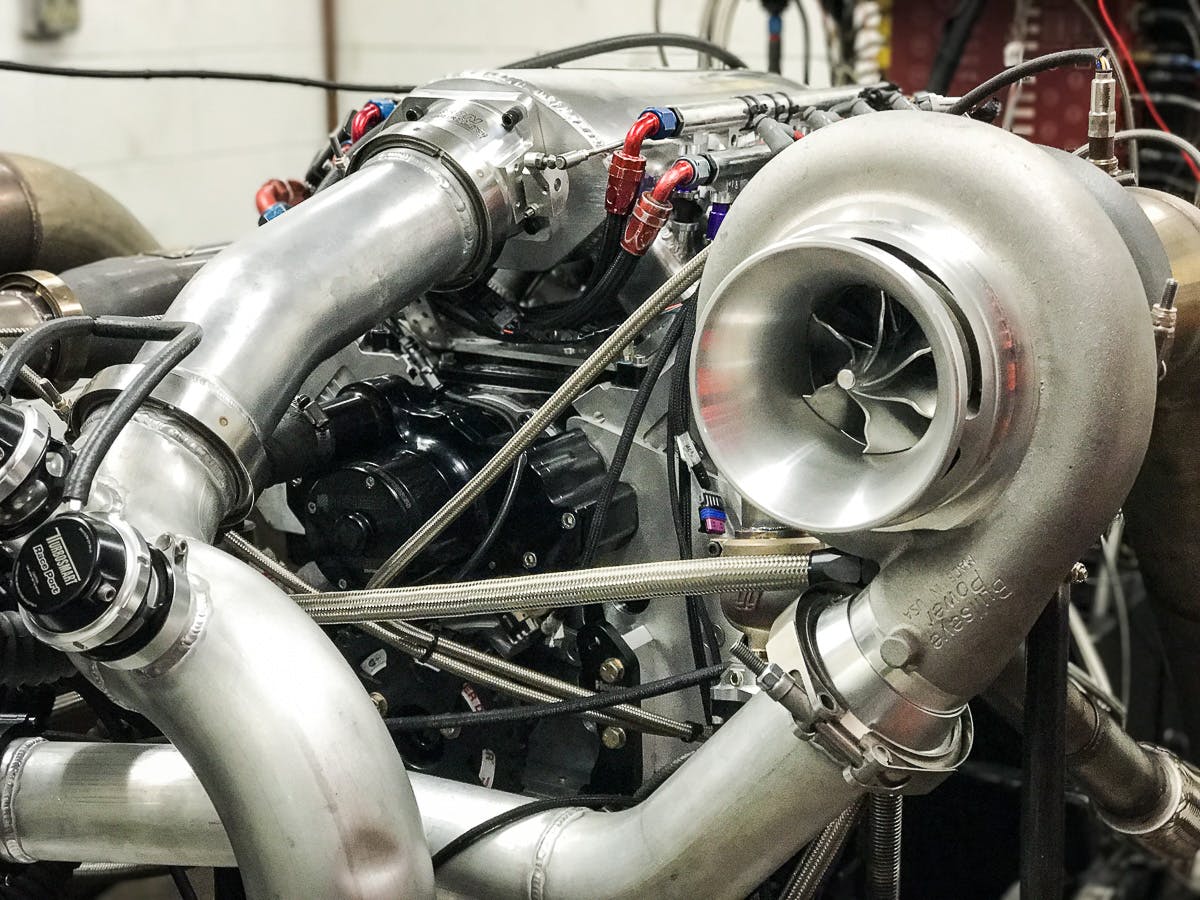“At 18 psi on pump gas, the backpressure on the turbos was measured at 6psi. It’s converting 6 psi on the backside of the turbo into 18 pounds of boost due to the efficiency and the size of the turbos. They are barely working and not creating a lot of heat to produce the power,” says McCaul.