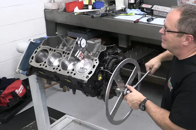 The block’s bores were opened up to 4.030 inches by Automotive Specialists, which is the entirety of the machine work completed on the block. Into the mains went an Eagle 4340 forged 4.00-inch-stroke crankshaft that was balanced by grinding the counterweights instead of the typical drilling of holes. Hanging onto the crankshaft is a set of Eagle 6.250-inch forged H-Beam connecting rods.