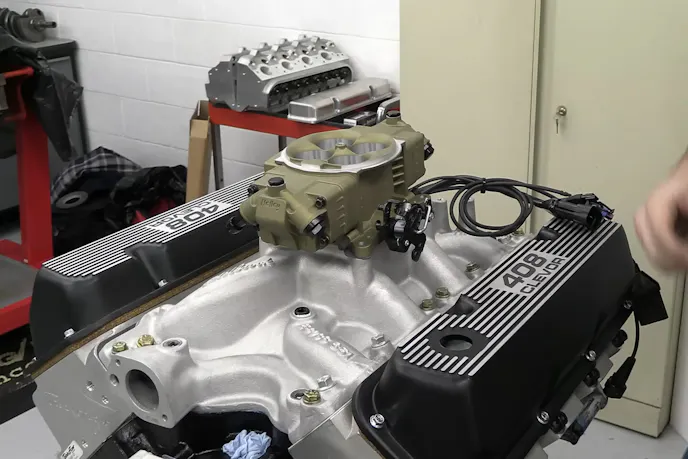 Topping off the combination is an Edelbrock Clevor-specific dual-plane intake manifold. Geometry tells us that a 9.2-inch Cleveland deck height and a 9.5-inch Windsor deck height are going to create some alignment issues, and that’s what the Edelbrock intake manifold takes into account. However, two holes needed to be drilled for coolant flow in the intake flanges. To provide fuel, Huneycutt went with a Holley Sniper Stealth EFI system that fits the Edelbrock intake’s 4150 flange, but provides all the convenience of modern EFI.