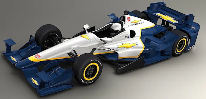 “We did maintain the overhead intake as is in the DW12, but you’ll see a much more shrink-wrapped tight engine cover without that vent in the back. It is quite a bit of a tighter package in there,” says Chris Berube, Chevy’s program manager for IndyCar racing.
