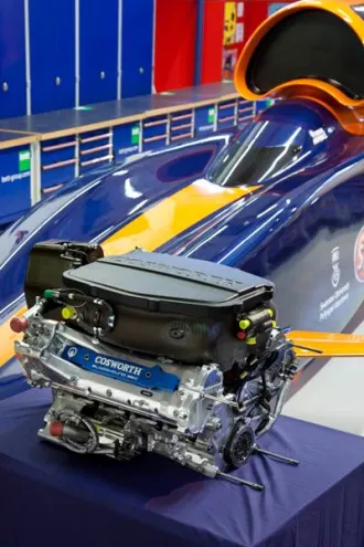 A Cosworth Formula 1 engine revved to 17,500 rpm in helping the Bloodhound SSC crew testfire its 12-foot-long rocket engine for the first time, giving engineers massive amounts of data to evaluate.