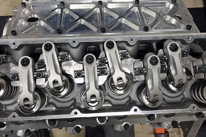 “We’re using PAC springs with titanium valves, Jesel shaft rockers, and the lifters are a custom design that Isky helped us with, which we then worked closely with a local manufacturer to produce,” Marinov elaborates. “It is currently the only solid bushing hydraulic roller lifter out there that I’m aware of. The spring tension we’re running puts it on the cusp of being called a solid roller lifter, but we still have that hydraulic cushion — it is what would be considered a ‘short travel hydraulic roller lifter.’ Which we also see a lot of value in adopting to our Trophy Truck builds.”