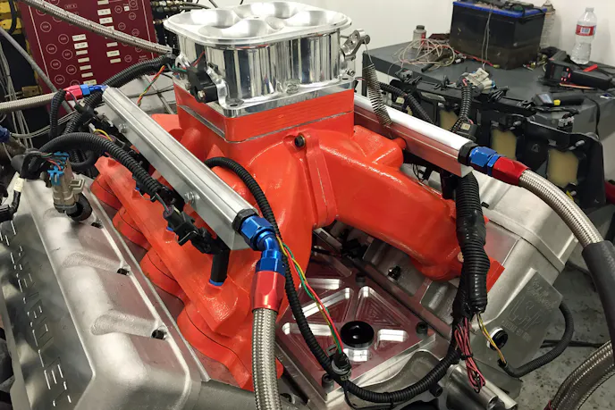 “We have been working directly with Edelbrock on intake manifold design and testing for their LS-R cylinder heads,” says Marinov. “We have always loved the Pro-Port raw LS-R casting, but we noticed that not a whole lot of manufacturers offered parts for it. Since our involvement in the design and testing phase, Edelbrock now has the Super Victor series single plane intake manifold for the LS-R, both carbureted [2823] and EFI [28235], and also offers a consumer ready version of the heads that are already CNC milled and don’t require $10,000 in parts and shop labor before they will fit your block.”