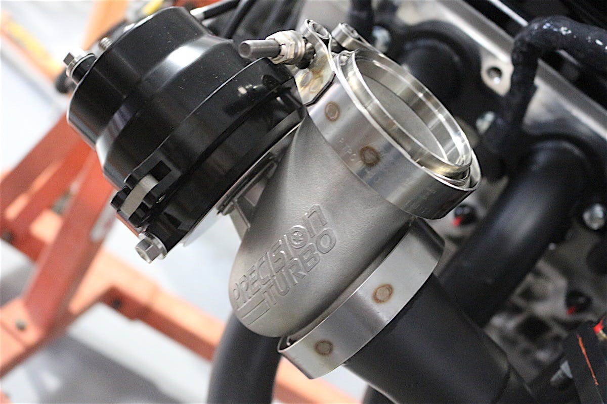 The turbos sit atop a set of headers from Richard Glaszczak of RPM. The exhaust had to be all new for the Gen II engine with the symmetrical turbochargers. A further upgrade is the pair of 60 mm Precision Turbo wastegates. “These engines make so much power, sometimes you have to get rid of the boost to keep the front end of the car down,” Muzio chuckled.