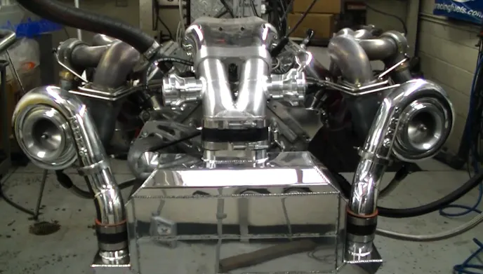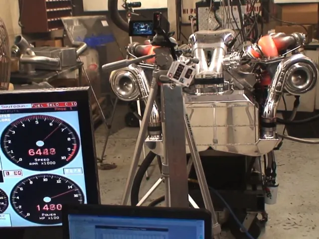 With just five to six pounds of boost, the engine posted 1,177 horsepower at 6,400 rpm. Doubling the boost to 12.8 pounds, and the engine responded with 1,522 horsepower and 1,363 lb-ft of torque. At 22 pounds, there was 2,127 horsepower and over 1,700 lb-ft of torque that sheared the bolts from the water servo, which led to a small flood on the dyno cell floor.