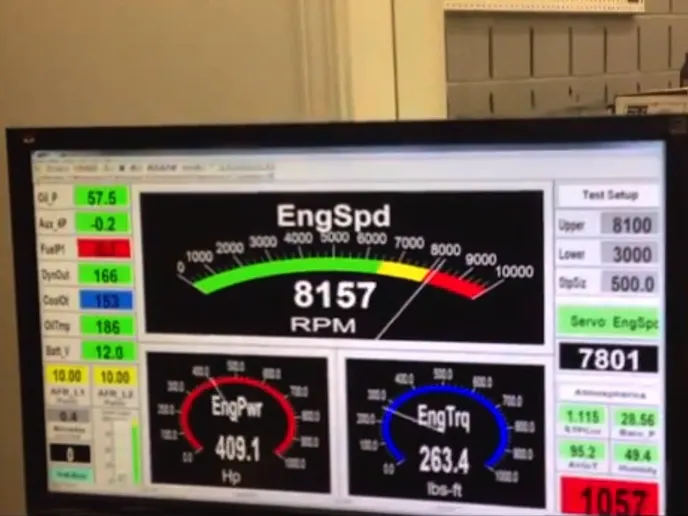 On this dyno video the engine pulled 527 horsepower and hit 8,100 rpm.
