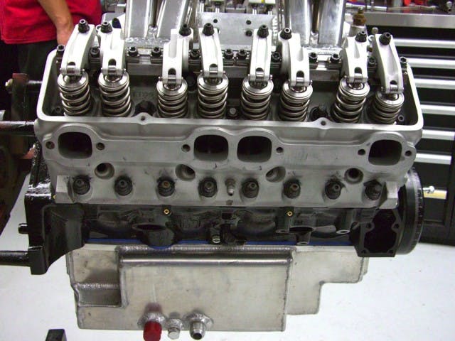 This engine sees duty in Ed Van Scoy’s B/GT class Corvette, a former record holder at around 223 mph who now is hoping to regain the title. But he’ll have to go well over 236 mph to do so. The flood on the salt flats before last month’s Speedweek has put that quest on hold. For now, however, EngineLabs has an inside peek into this 850-horsepower screamer built around a set of Bowtie cylinder heads that once powered Michael Waltrip in Busch competition.
