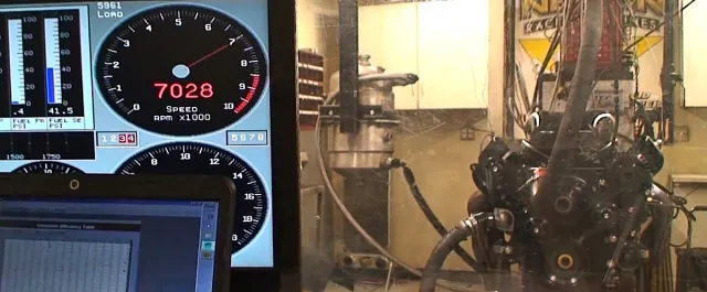 On the NRE dyno the engine, which was completed with a Wegner accessory drive and Kooks headers, pulled 712.7 horsepower at 6,500 rpm with peak torque of 623 lb-ft at 5,200 rpm. Although not noticeable on the video’s dyno chart, the engine hit 499.9 lb-ft at 2,400 rpm and didn’t fall below that level throughout the test. It was still making 700 horsepower at 6,900 rpm.