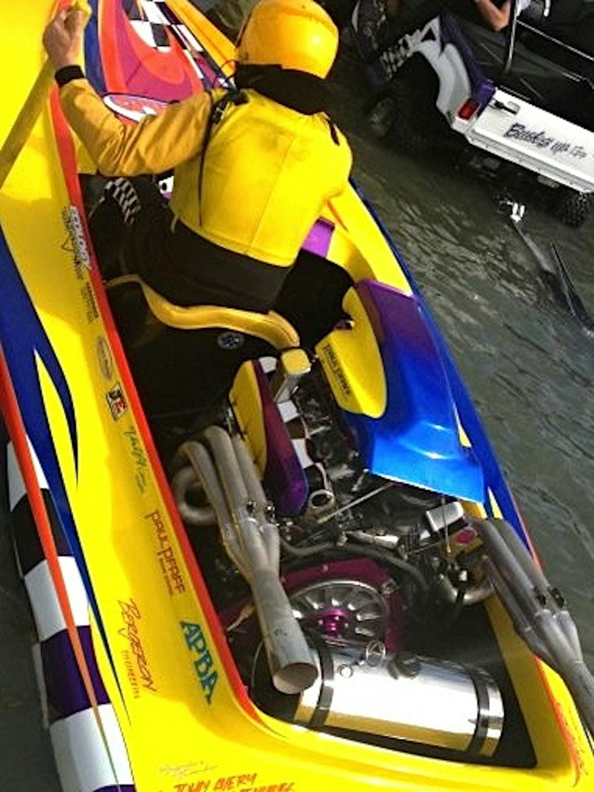 “It’s a short torque band,” says Jennings, adding that the 18-foot flat-bottom boats are limited to 1,950 pounds and 112-octane fuel. “As soon as you stand on the gas, these boats will straight to 6,000 rpm, because the prop slips and then it pulls you right up to 7,500 rpm.”
