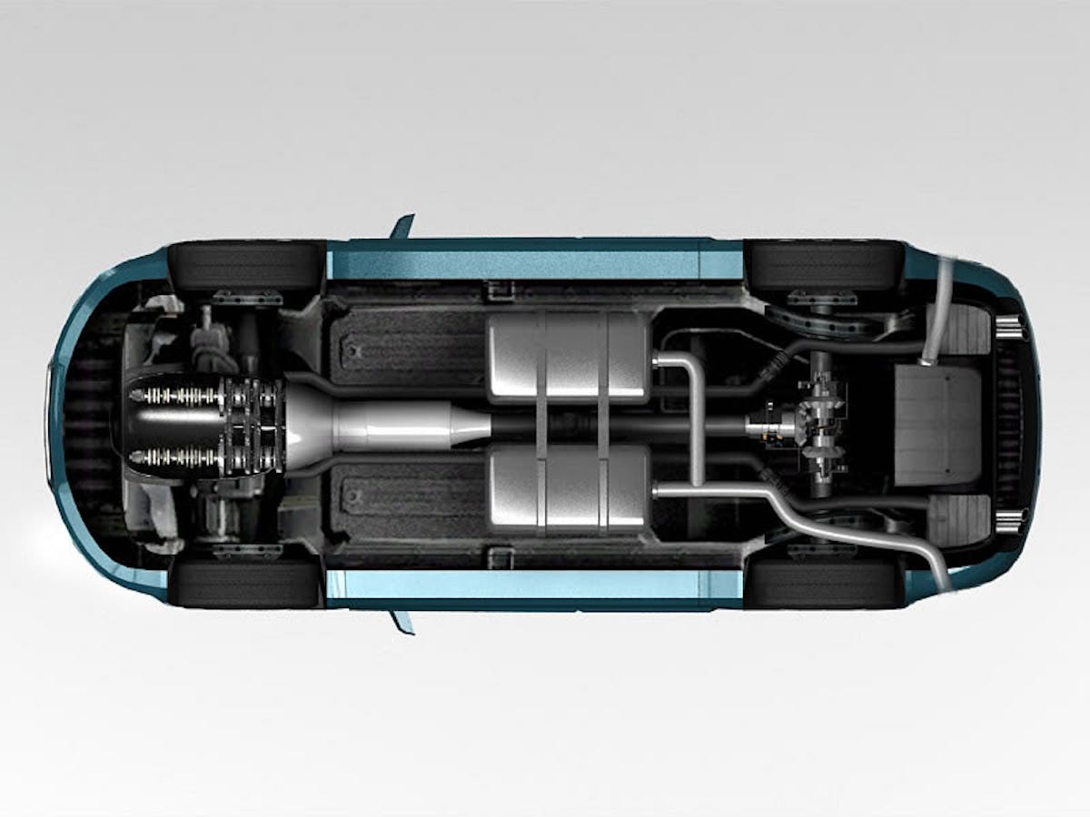 The Eco-Motive H-motor is simple in its design. The engine can be powered by either regular gasoline or compressed natural gas, by the driver simply pushing a button. Each bank of the H-shaped engine is powered exclusively by one of the two fuels; at the driver’s discretion the engine can switch from one to the other.