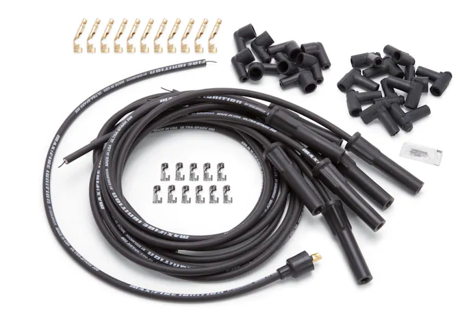 Each kit includes 8 spark plug wires (varying lengths), points style terminals, HEI plug style terminals, straight distributor boots, 90° distributor boots, distributor to coil wire, dielectric grease and installation instructions. Will require the use of a wire crimping tool to complete the installation.
