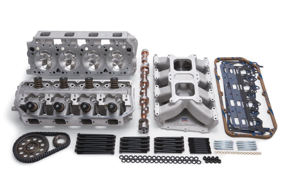 This Top End Kit (#2052) includes an Edelbrock Dual-Quad intake manifold (#7524), Victor Jr. cylinder heads (#61175), Rollin’ Thunder hydraulic camshaft (#2212), timing chain (#7805), head bolts (#8513) and gasket set (#7349), giving you just about everything you need for installation. In dyno testing, this combination produced 705 HP and 623 ft-lbs. of torque when toped with dual Performer Series carburetors (#1405). With just about everything you need to top off your Chrysler, Edelbrock Top End Kits are performance-proven.