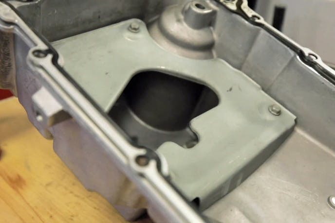 One of the other weaknesses of a wet-sump system appears in high-G situations, be it acceleration, deceleration, or cornering. “If you uncover that pickup, you’re going to suck air into the system, and air doesn’t exactly lubricate the system well,” says Strader.