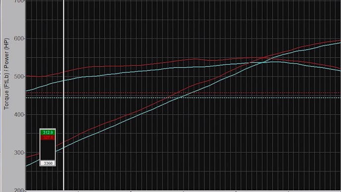 After compiling the data from the two dyno sessions, there was a distinct trend seen on the data. “It’s pretty interesting in that with zero changes, the engine made more power from the beginning to the end of the run,” reveals Strader. “From 3,000 rpm to 6,000 rpm, on average, the engine made 17 lb-ft more torque and 14 horsepower more… Everywhere. Some places made more than that, some made a little less, but there was an increase everywhere.”