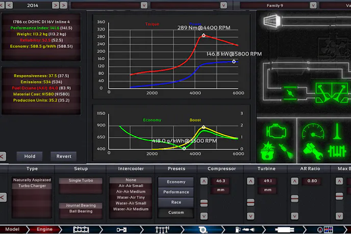Everything from an 11,000 rpm twin-cam four-cylinder to a twin-turbo big-block, or even a V16 is available in the engine building simulator for you to go crazy with. Every parameter you can change on an engine in real life can be altered in the game. Once you choose your engine parts, specs, and materials, you can then run your engine on the dyno. Once on the dyno, you can swap parts, adjust settings, and tweak parameters and see how those changes affect your power and torque curves, in real time. The physics engine used is so realistic, publisher Camshaft Software bills it as edu-tainment, and it comes complete with tutorials, parts descriptions, and an extensive manual to support budding engineers. Also included for those easily-bored without a challenge, the game features engineering challenges, which gives you performance goals and design parameters in which to work.