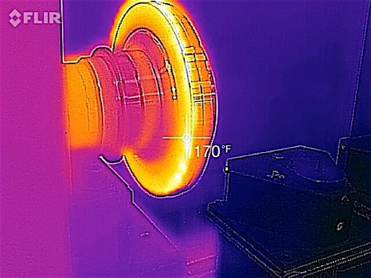 “The Hooke’s Joint machine is capable of generating 10 times the vibration amplitudes found in an engine. We can generate a tremendous amount of heat to simulate the life of an engine in a much shorter period of time,” says Neyman. “Thermal imaging technology really helps demonstrate the operation of a viscous damper. They are like a radiator when sized properly.  Viscous dampers are quite common in applications with low air flow, like in the cabin of boats, agricultural equipment, and stationary industrial installations. If the application is specified as low air flow in advance, a Fluidampr can be designed to handle the most stagnant conditions, without sacrificing damper longevity.”