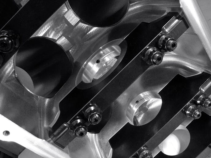 CFE engineered the block to accept 4.5-inch bore-space symmetrical-port heads similar to the GM splayed-valve heads or CFE’s SBX heads that were originally developed for Pro Stock Trucks in the ’90s. The valvetrain geometry is also dedicated to those heads, including .937-inch keyway lifter bushings. A quick check of the lifter valley shows a very clean, open design with none of the familiar LS trappings such as the supports for plastic lifter buckets.