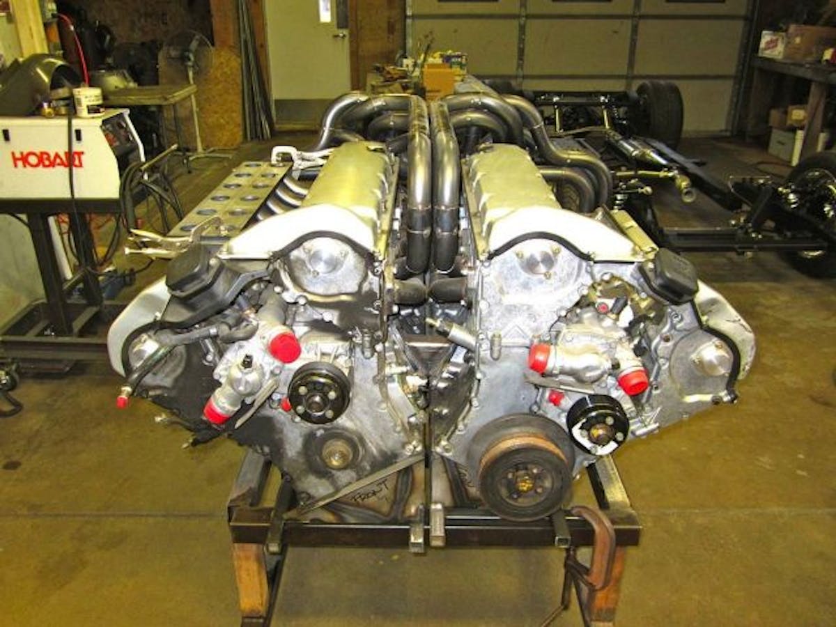 Turns out the engine in question was actually a pair of BMW V12 engines mated side-by-side and will be linked to a common output shaft that will hook up to a Turbo 400 transmission. Eventually, the owner wants to install this unique setup into a ’57 Chevy.