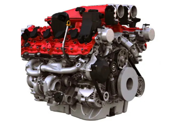 Key to the improved performance is a pair of twin-scroll turbochargers mounted to unique 3-piece cast exhaust manifold/turbo housing. The direct-injected engine also features a 180-degree crankshaft, which is an important element in Ferrari promising “the most exhilarating soundtrack any turbo has ever yielded.”
