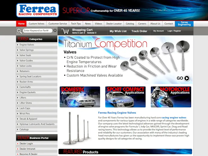 Users will find their valves and other Ferrea products much easier using the redesigned navigation. They can search by valve series and engine make as well as order custom valves.