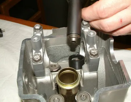 The tool can then be pulled out of the protective guide with the valves retainer locks (keepers) held safely in place at the end of the Keeper-Eeze tool and the rest of the valvetrain can then be safely removed.