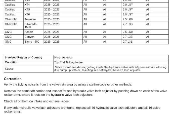 Now, that black eye is back, possibly including a split lip, as this time, the issue can’t be traced back to a faulty sensor reading. This time it’s an audible engine tick. While the aftermarket makes jokes about lifter tick in various models, when a customer drops the cash for a Cadillac CT4, CT5, XT4, XT5, or XT6, they expect a smooth, quiet engine and are much less forgiving of any kind of engine NVH.