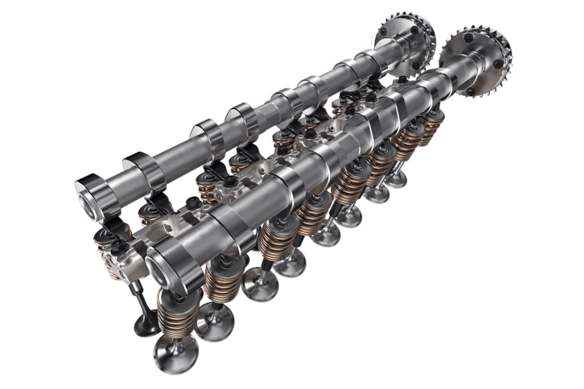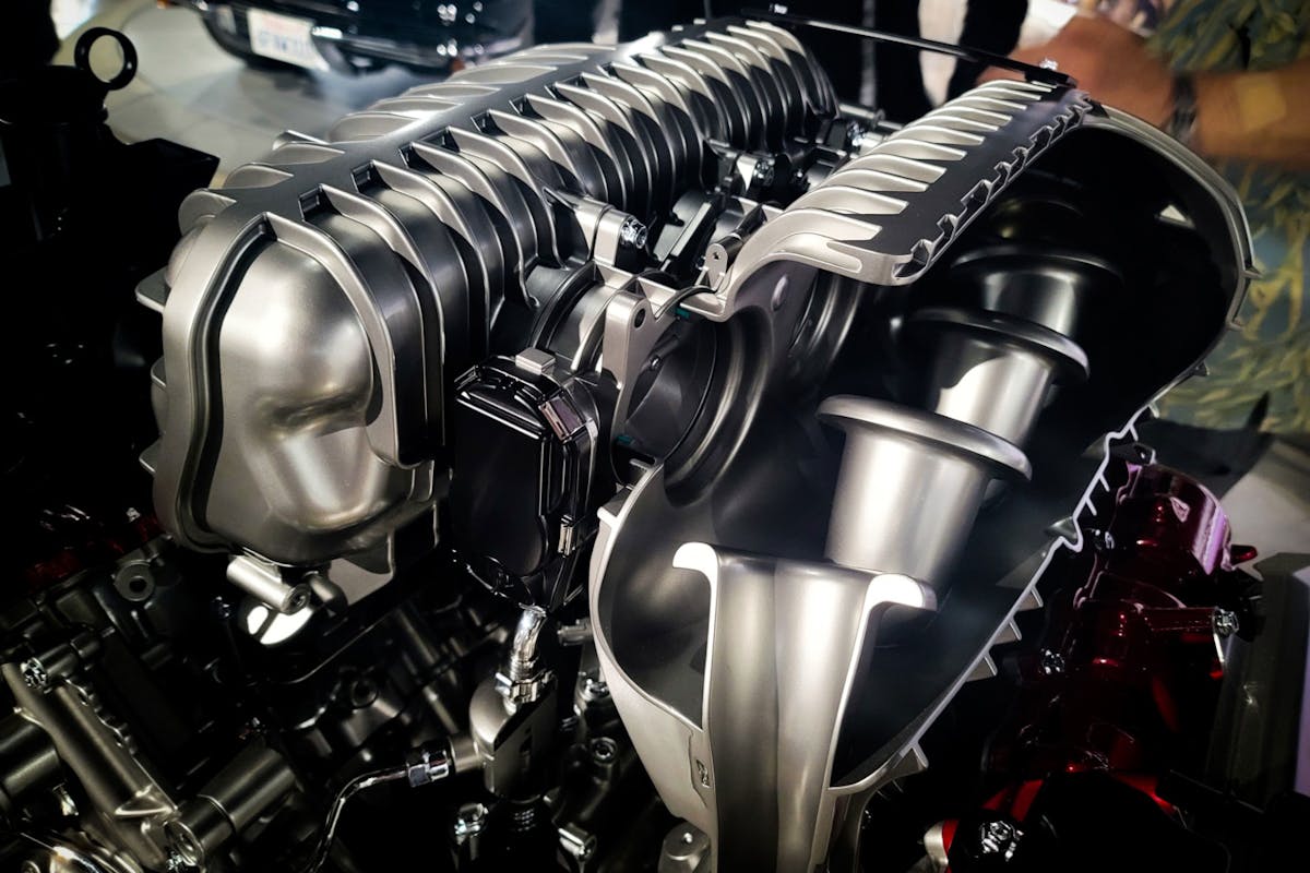 Looking into the intake manifolds, the level of effort to achieve that efficiency is obvious. Each bank has its own plenum and throttle body,  with each cylinder’s intake runner having its own bellmouth to smooth airflow into the cylinder, as well as an active intake airflow management system (no, not DOD or AFM). Direct injection is almost a given in today’s world, and the ignition system appears to be a fairly traditional coil-on-plug system mounted to the valve covers.