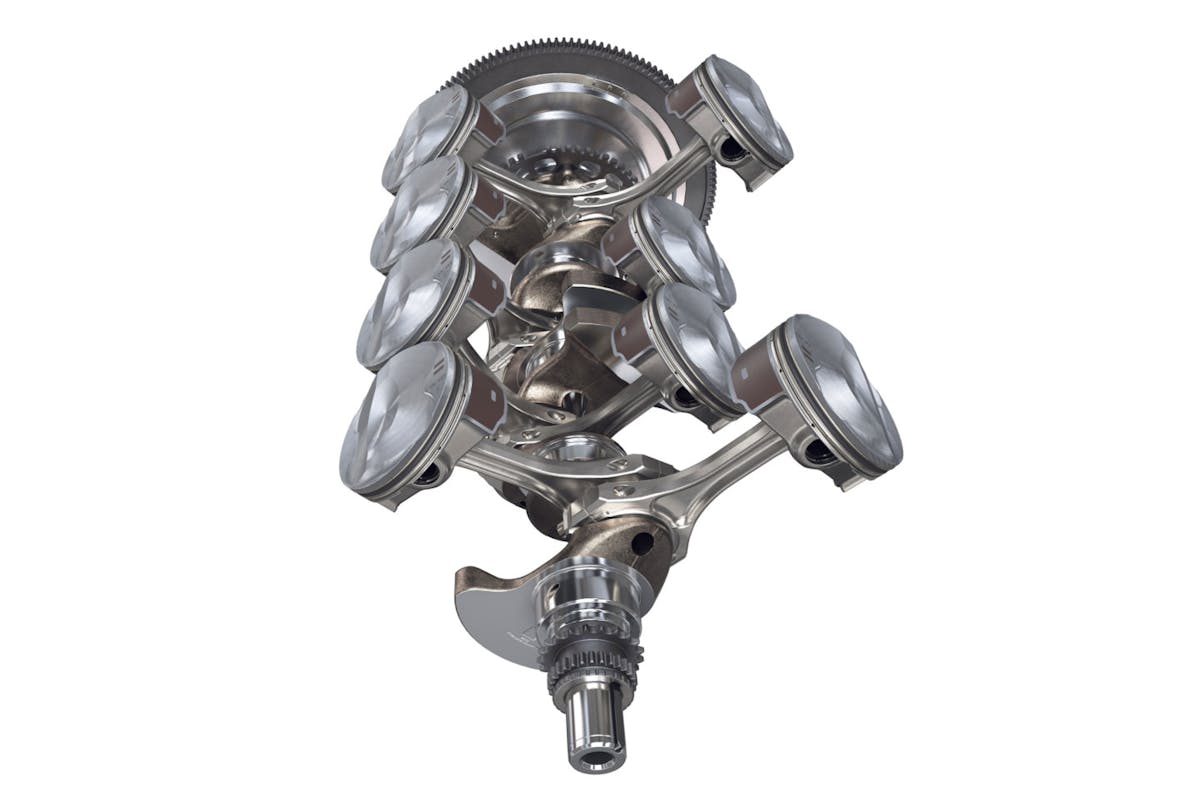 The engine will feature forged-aluminum pistons connected to forged-titanium rods — a combination we’ve seen from GM before in the LS7 — but what is all-new for GM is the 3.15-inch stroke flat-plane crankshaft. “With a flat-plane crankshaft, the mass that is moving the fastest, is much lighter. That allows the engine to accelerate much more rapidly than any small-block before it,” says Dustin Gardner, Assistant Chief Engineer, LT6