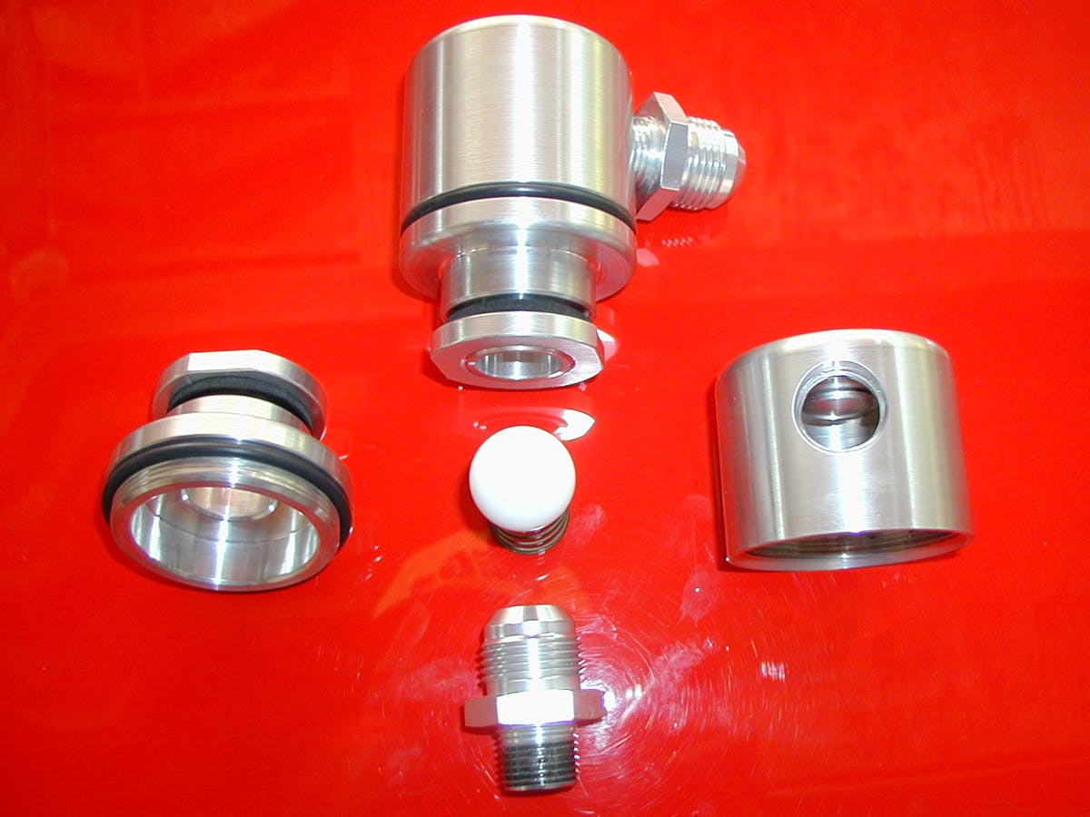 GZ Motorsports LLC is proud to announce our new high volume pressure relief or blow off valve. Made from 6061 Billet Aluminum stock, it is a two piece adjustable valve that relieves pressure in the engine from excessive blow by. It is activated at below 2 psi pressure. The part number is VCB100B which consists of a base with a nylon washer and nut that can be installed in a standard grommet hole in a valve cover or placed in a valley pan and a top that may be removed to replace the spring of Teflon ball inside. The top has an o-ring between it and the base to which is attached. Once the valve is activated the blow-by gases are vented through a fitting in the top which may be routed to a catch can or other means of containing fluids in the gases.