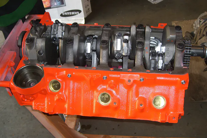 The engine was topped off with a complete offering of ARP‘s hardware, a Professional Products harmonic damper, and a cowl induction air cleaner assembly. The engine was covered in a fresh coat of Chevy Orange paint and has had all-new freeze plugs installed as part of the build process.